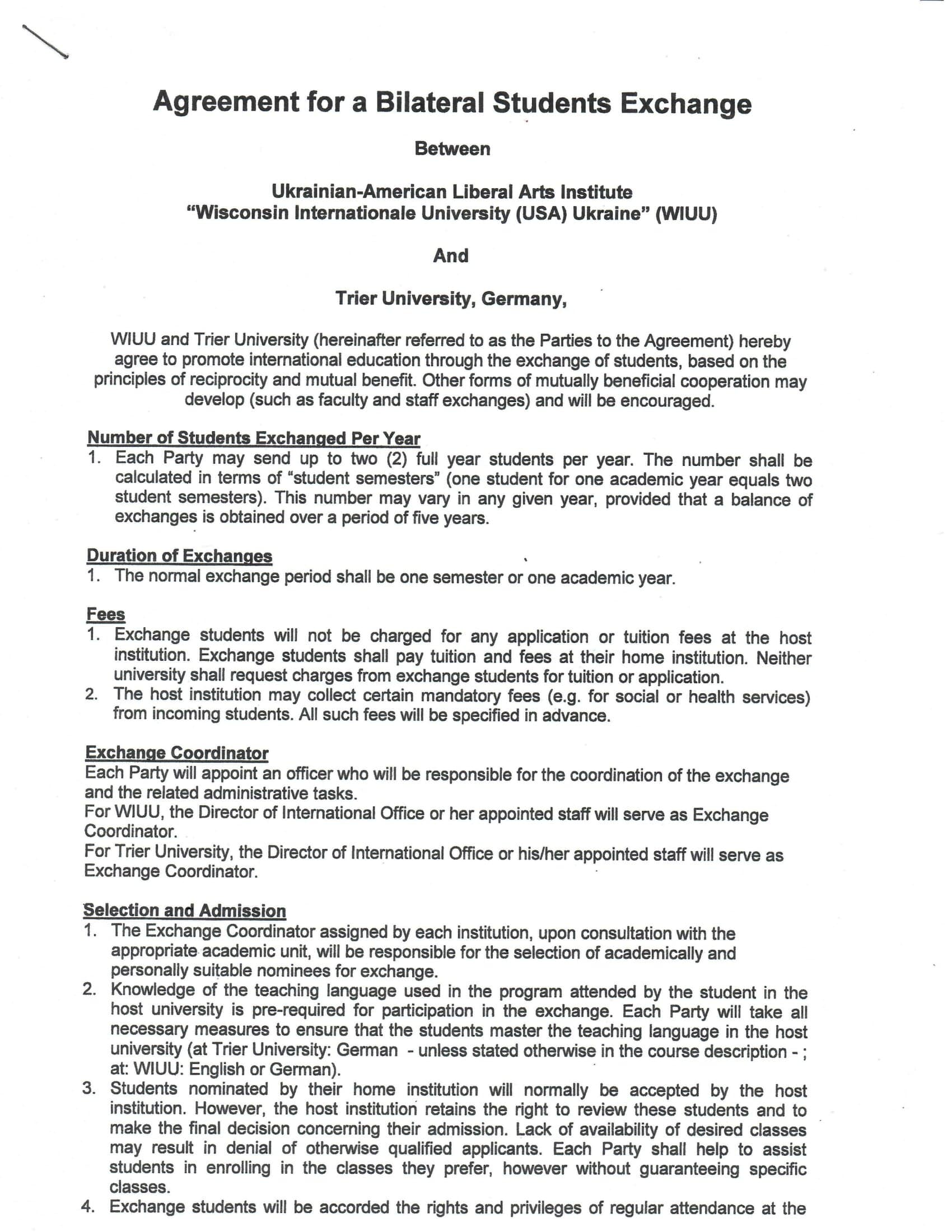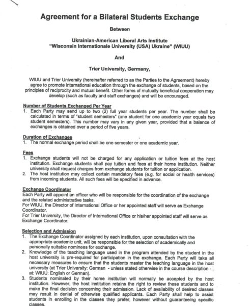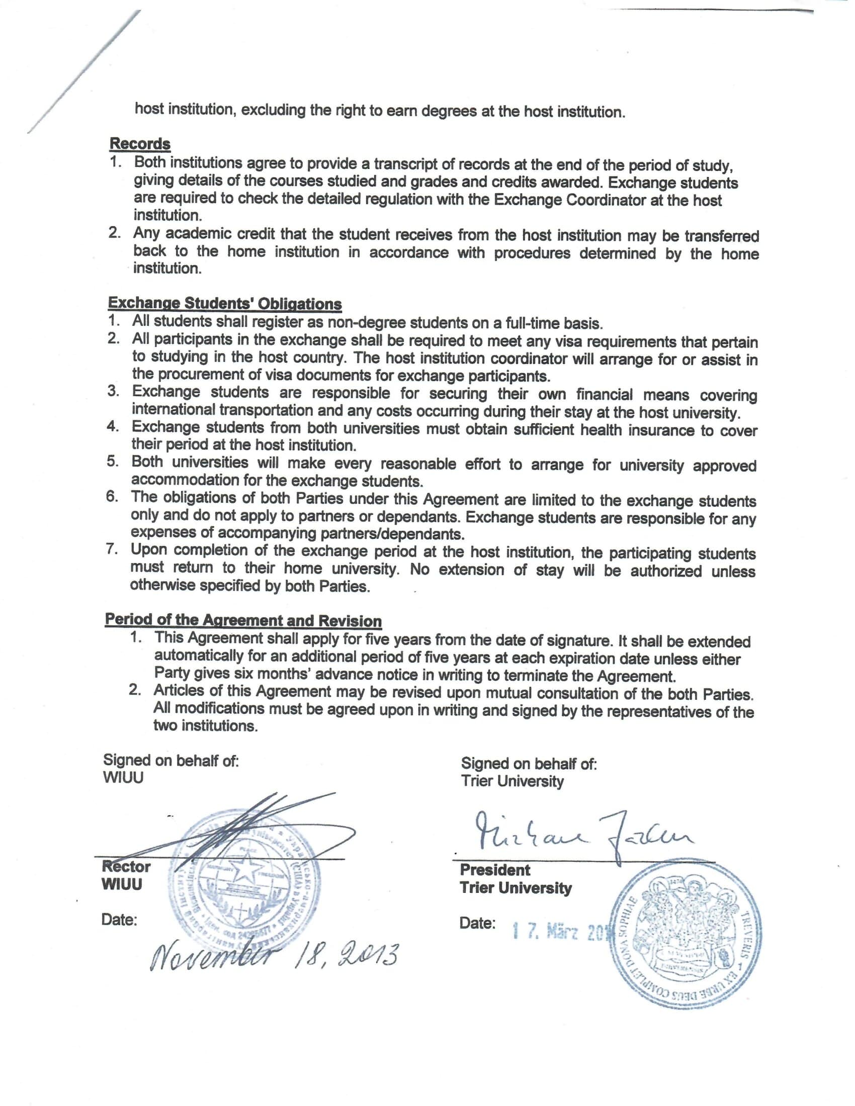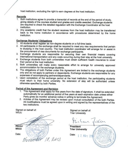 Student Exchange Agreement between Concordia and University of Trier was signed in March, 2014. According to this Agreement our students attend classes at our partner University.