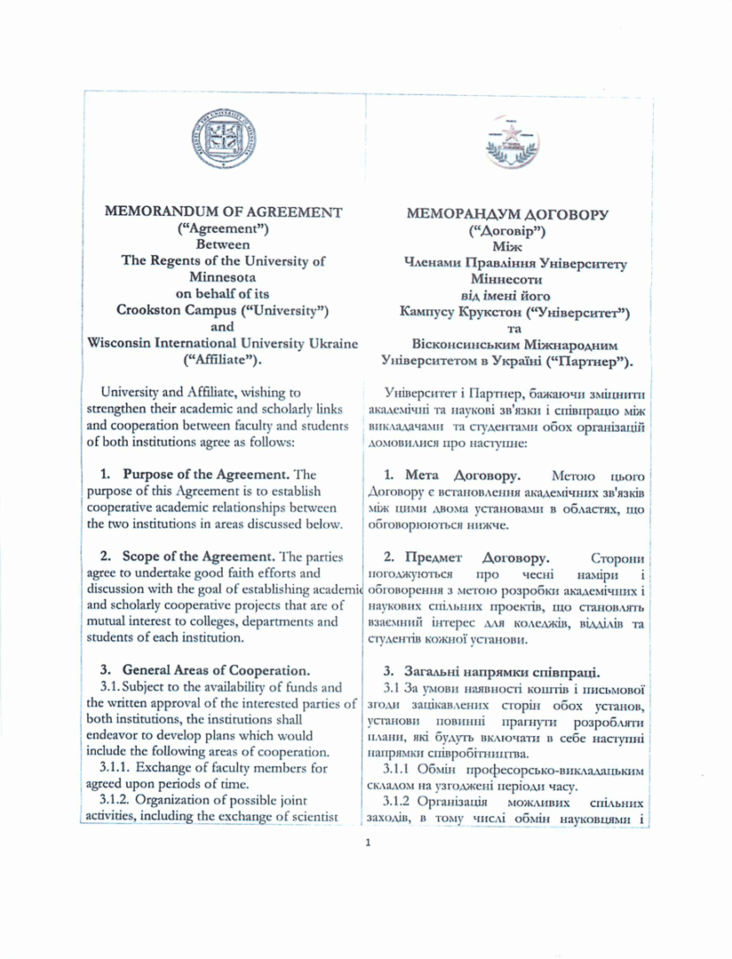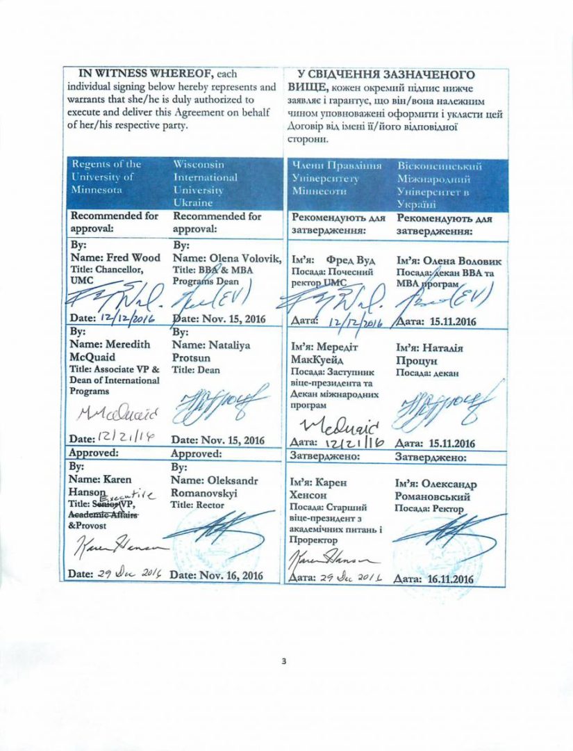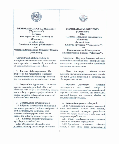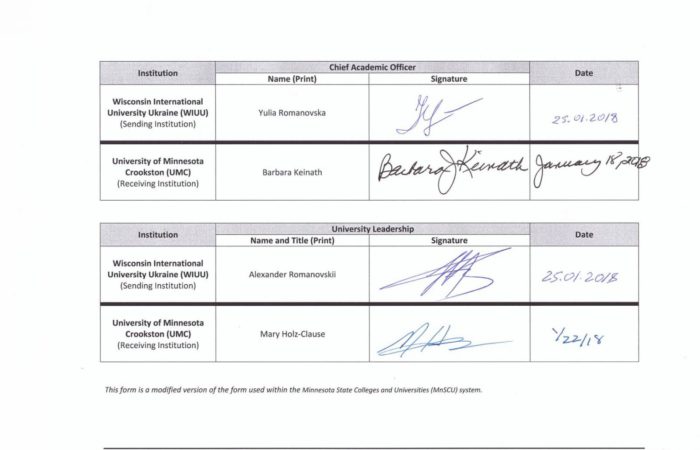 At the end of 2016, the agreement was signed between the University of Minnesota Crookston (USA) and Concordia University Ukraine. Nowdays our students, faculty and staff participate in transfer programs. Looking forward to the new joint projects!