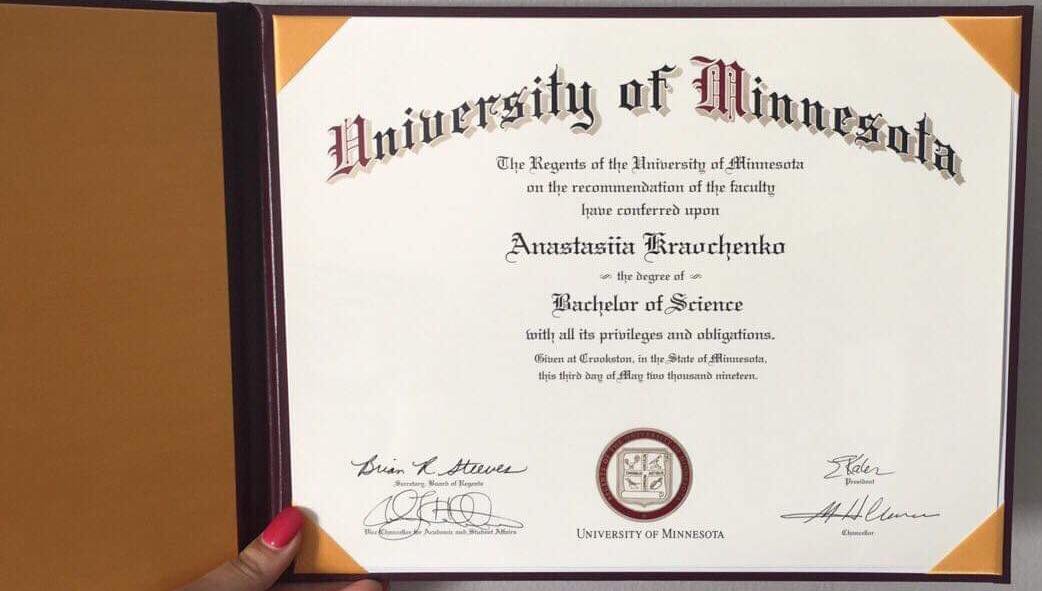 Now Elina is successfully studying at the University of Minnesota Crookston and is actively involved in student life.