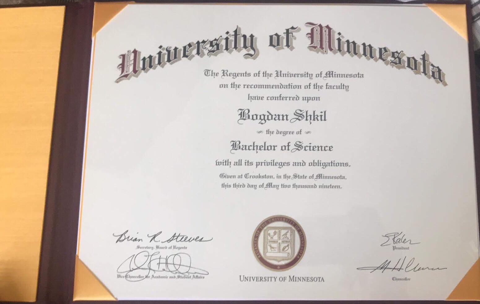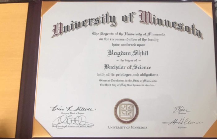 Anastasiia and Bogdan transferred to study at the University of Minnesota Crookston (USA) after three successful years at our university. During the academic year they passed the necessary subjects and received diplomas from the University of Minnesota.