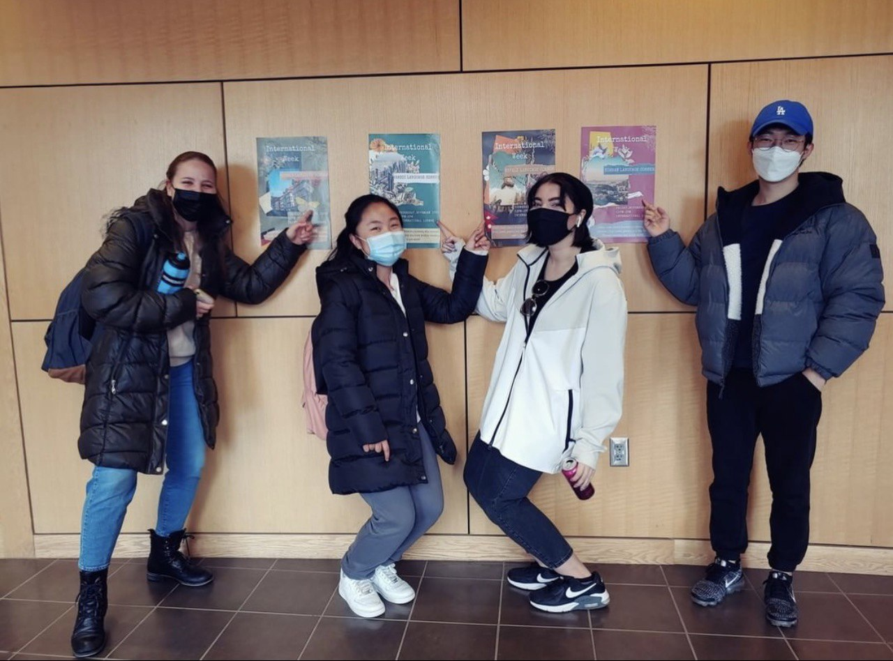 «На честь тижня іноземних студентів наш університет влаштував уроки іноземних мов від наших студентів. Цього року на уроках були такі мови: українська, німецька, непальська, корейська та арабська. На одній із фотографій можна побачити один із цих уроків.»